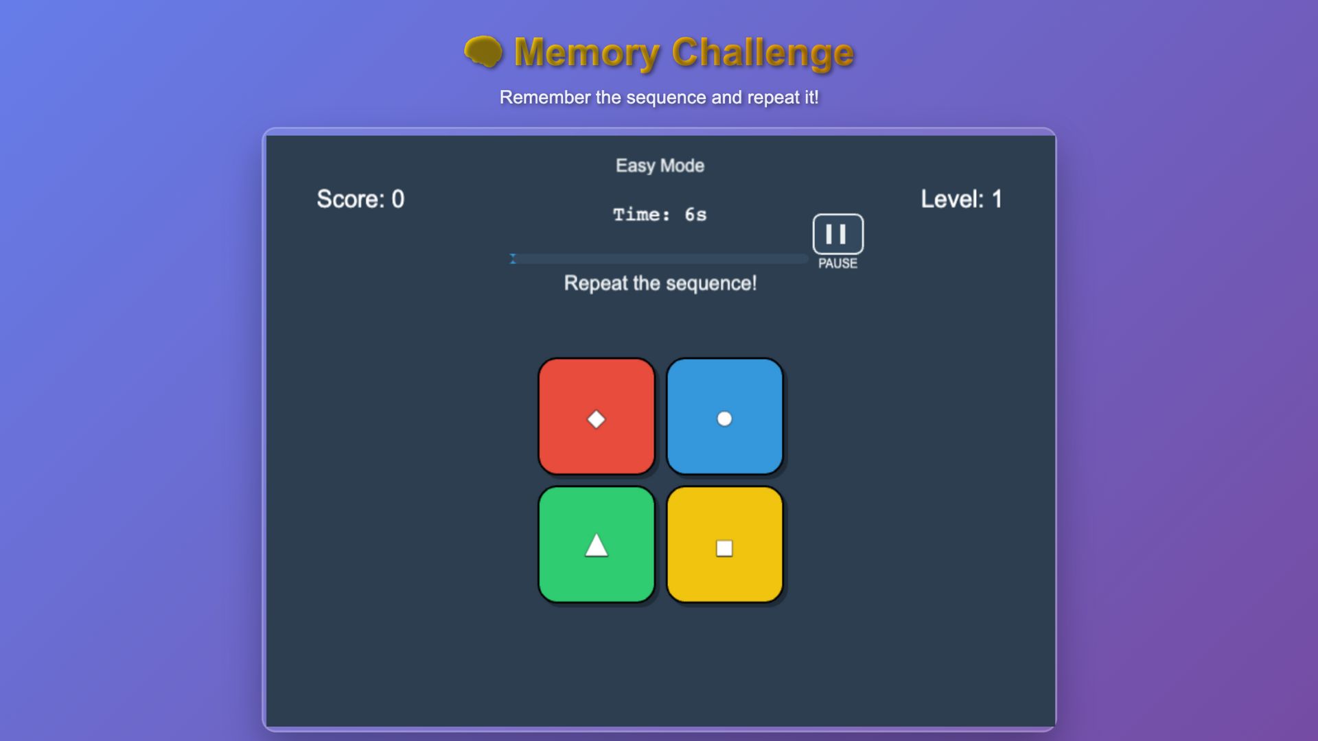 🧠 Memory Challenge - Simon Says Style Sequence Game!